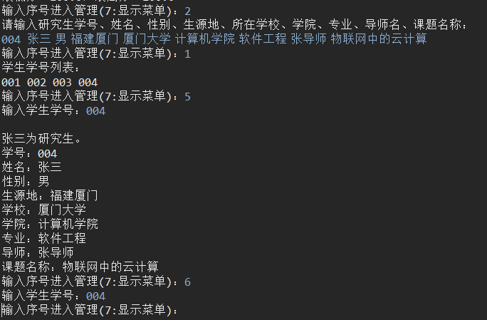 2 001 张三 男 福建厦门 厦门大学 计算机学院 软件工程 张导师 物联网中的云计算