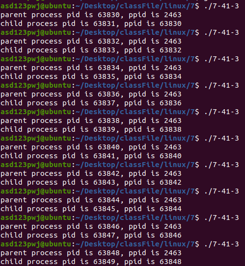 printf("child process pid is %d, ppid is %d\n", getpid(), getppid());